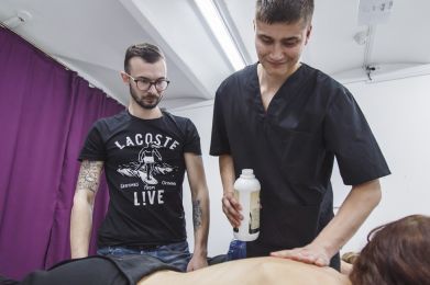 Выполнение техник и видов спортивного массажа на моделях под руководством преподавателя. Разбор ошибок и рекомендации преподавателя в общении с клиентами.